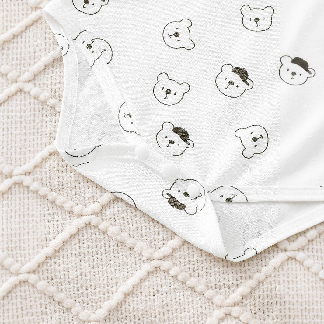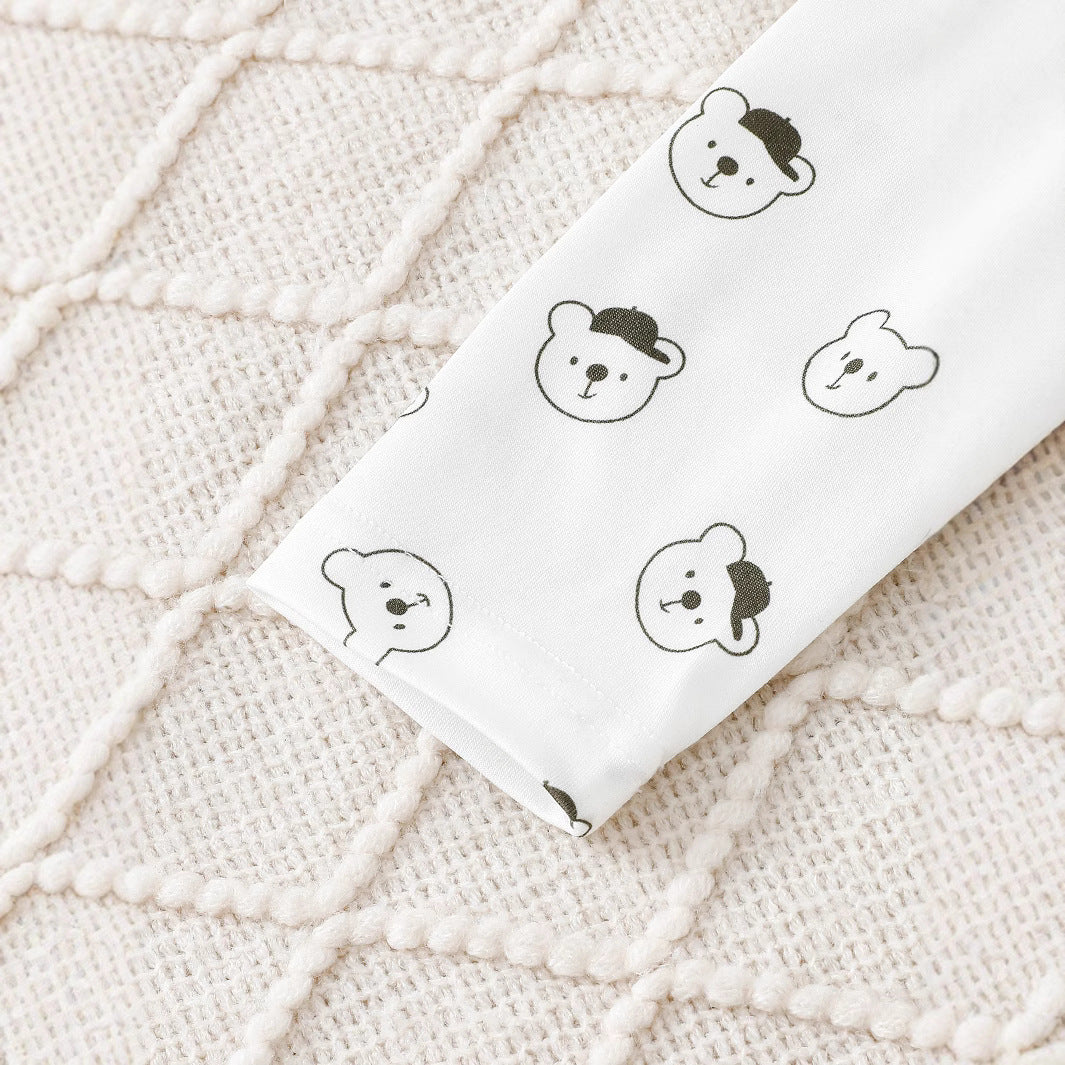 Bear Printed Long Sleeve Round Neck Romper Corduroy Suspender Trousers Suit